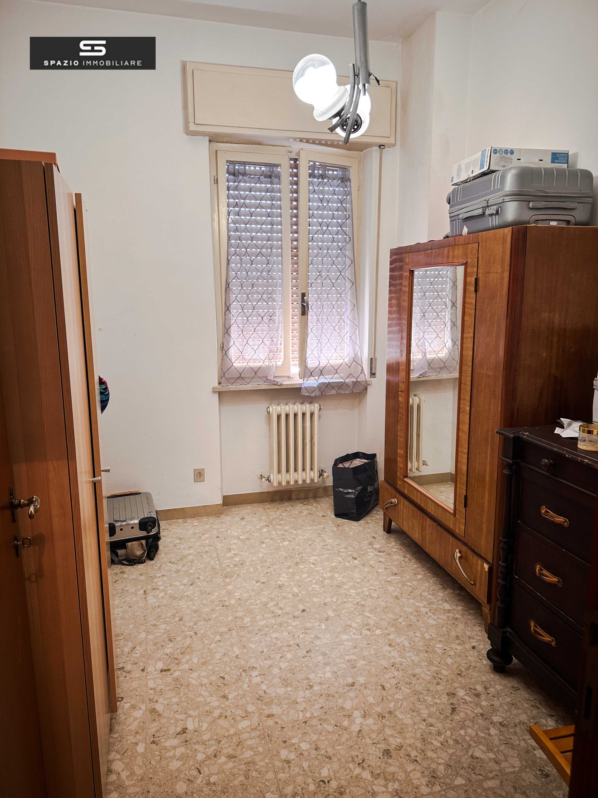 In VENDITA a TERAMO, zona Gammarana, in via Dell’Aeroporto n. 80, APPARTAMENTO di 132 mq commerciali, posto al terzo piano con ascensore (6 gradini da fare per accedervi dal pianterreno), situato all’interno di una palazzina realizzata nel 1970 e composta da 10 unità abitative. L’immobile, di circa 108 mq calpestabili, è così suddiviso: ingresso, ampio soggiorno, cucina abitabile, disimpegno, tre camere da letto (di cui due matrimoniali ed una singola), bagno con vasca e due balconi a livello (uno su cui affaccia la zona giorno, uno su cui affaccia la camera principale). Completa la proprietà immobiliare, una cantina di circa 9 mq, posta al piano interrato del fabbricato, con ascensore che arriva al piano sottostrada. La soluzione non dispone di posto auto.